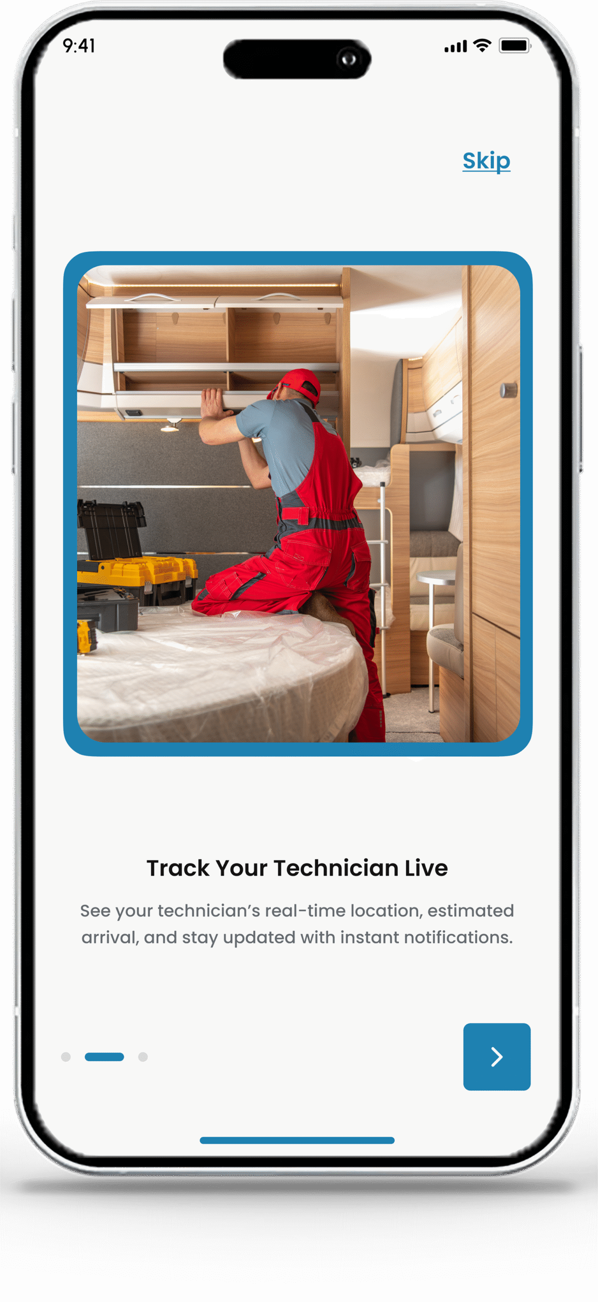 RV Pros App is designed with an easy-to-use and modern interface. Whether you are a customer booking services or a technician managing work, everything feels smooth, fast, and intuitive.